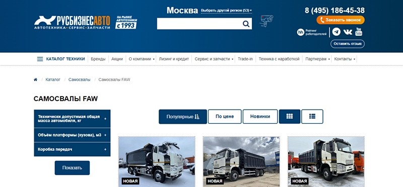 Если вы хотите купить самосвал faw в Москве, то можете посетить официальный сайт компании «Русбизнесавто» в интернете. Там предлагается большой выбор такой техники по рыночным ценам.