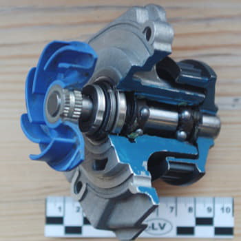 Относительно же металлических крыльчаток, то главный их недостаток это большой показатель инерционности. Но в отличие от пластиковых не меняет форму и не изнашивается со временем. У бюджетных помп иногда наблюдается появление следов коррозии, особенно при использовании некачественного антифриза или обыкновенной воды в системе охлаждения.
