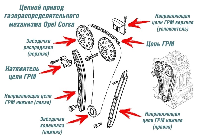 Привод газораспределительного механизма (ГРМ) жестко объединяет коленвал с распредвалом в единую систему. Для эффективной передачи крутящего момента цепь привода ГРМ должна находиться в натянутом состоянии. Растяжение и провисание цепи приводит к нарушению синхронности вращения валов. А далее — к снижению мощности двигателя, повышенному расходу топлива и износу деталей.