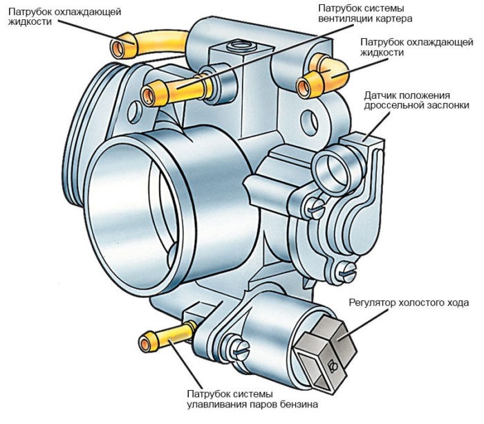 У инжекторного двигателя нет механической связи педали газа и ДЗ, она управляет, перемещаясь, холостым ходом. В работе электронных систем важную роль играет датчик и электронные системы. Работоспособность можно проверить, используя омметр, соединив его с входным и выходными контактами.