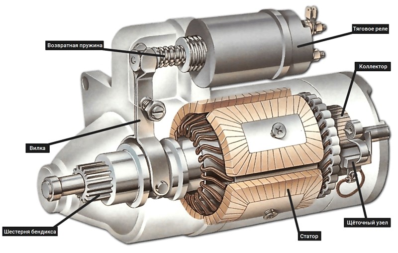 Любому двигателю внутреннего сгорания, дизельному или бензиновому необходимо пусковое устройство – стартер. В подавляющем большинстве грузовых и легковых автомобилях запуск двигателя осуществляется при помощи электростартера – отдельного устройства, служащего для пуска двигателя.