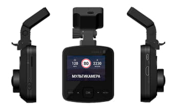 Прекрасное устройство 3в1, относится к бюджетному аналогу комбо-видеорегистраторов класса премиум. Оснащен двумя камерами: переднего и заднего вида, отличный радар-детектор и GPS навигатор.