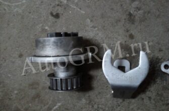 Очищаем посадочное место и насухо его протираем. Смазываем уплотнительное кольцо помпы тонким слоем герметика и ставим ее на место. Проворачиваем ее по максимуму против часовой стрелки. Болты сильно не затягиваем поскольку ею еще натягивать ремень ГРМ. Ставим железную защиту, обводной и натяжной ролик и после этого шкивы распредвалов. Проверяем совпадение всех меток.