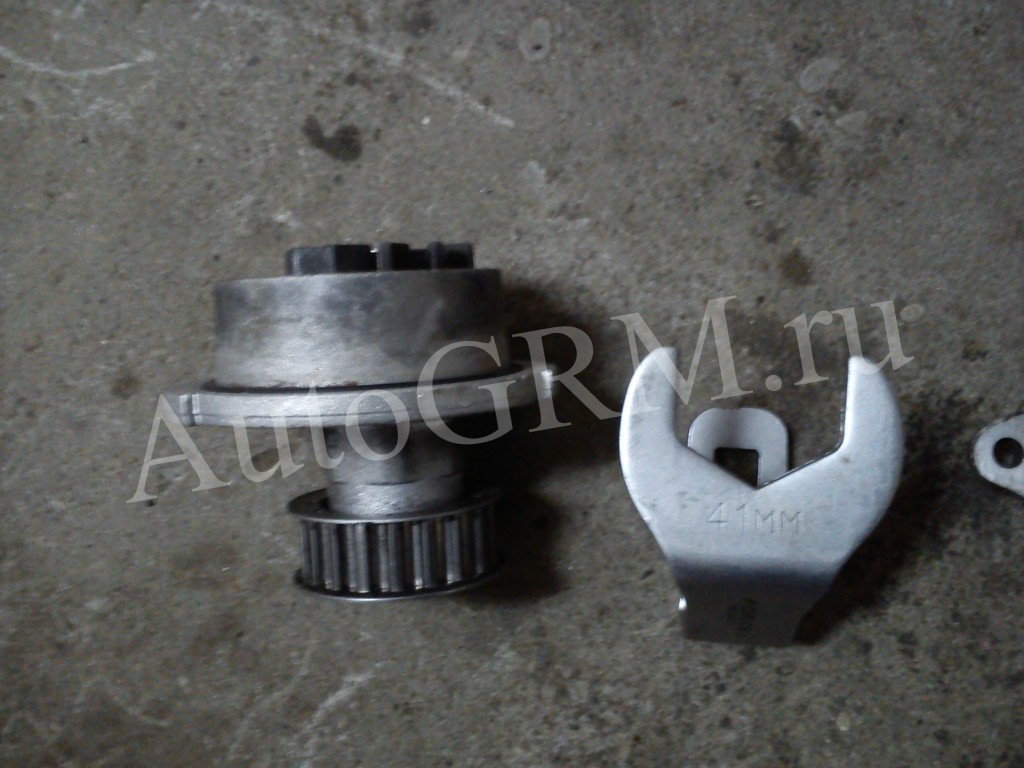 Есть одна особенность, ремень натягивается помпой и для этого нам понадобится специальный ключ на 41.