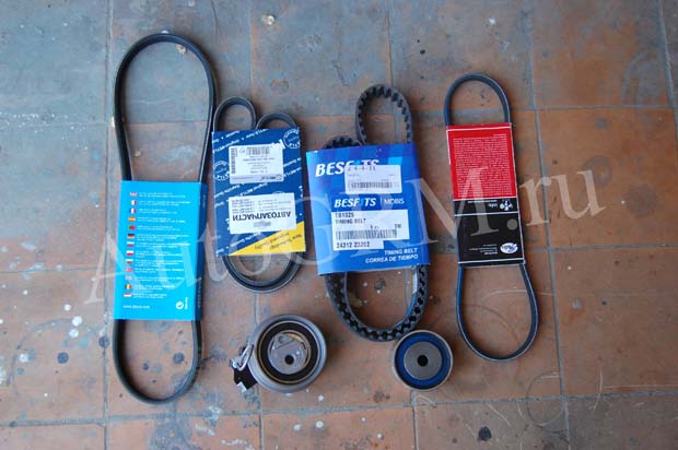 Hyundai Tucson 2006 года с 16-клапанным двигателем G4GC (DOHC, 142 л.с.). Плановая замена ремня ГРМ на 60 000 км. пробега. Хотя данный двигатель оборудован системой изменения фаз газораспределения для впускных клапанов (CVVT) для замены ремня ГРМ особых приспособлений не потребуется. Меняем также все ремни навесных агрегатов, их три, натяжной и обводной ролик.